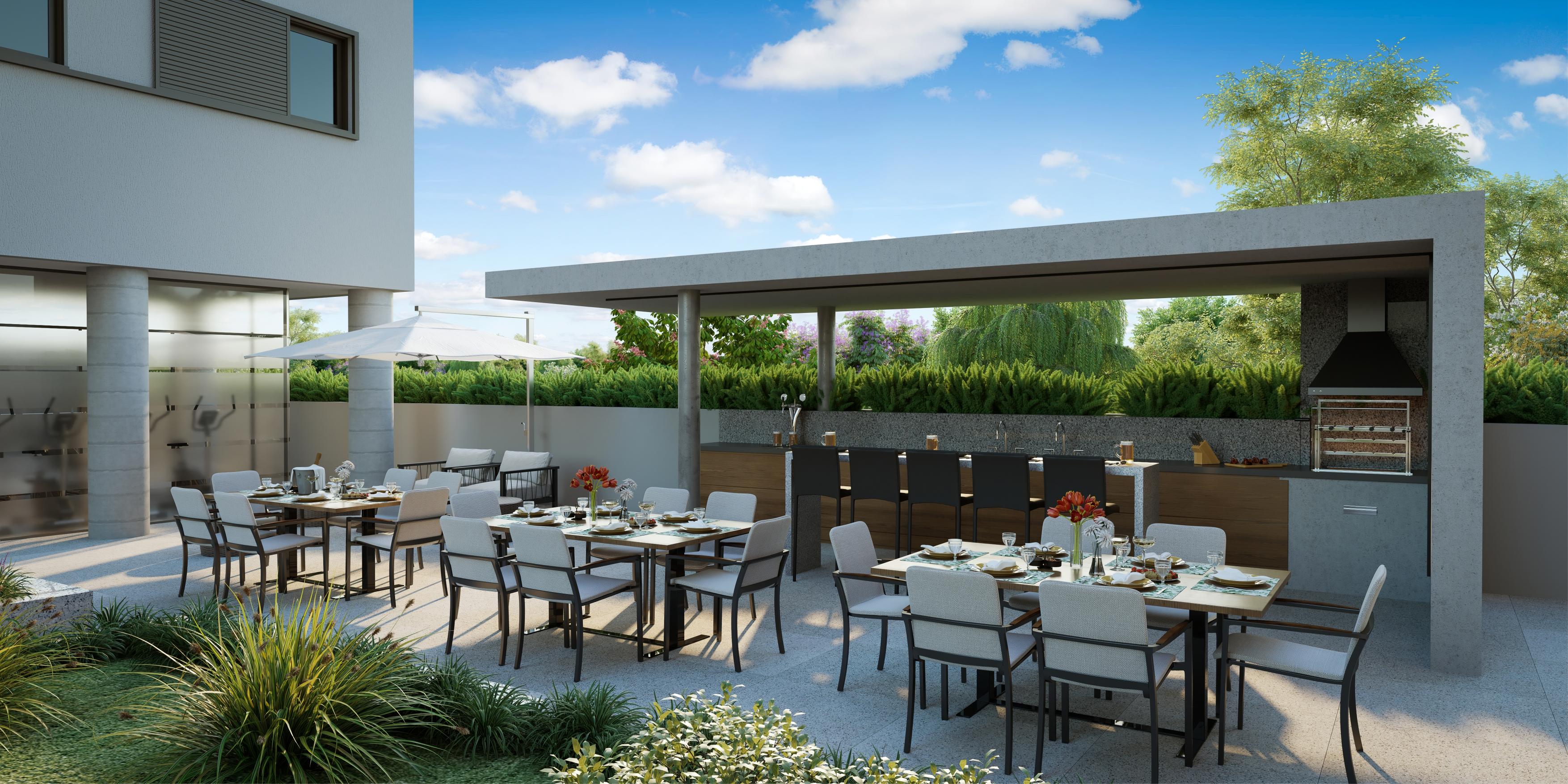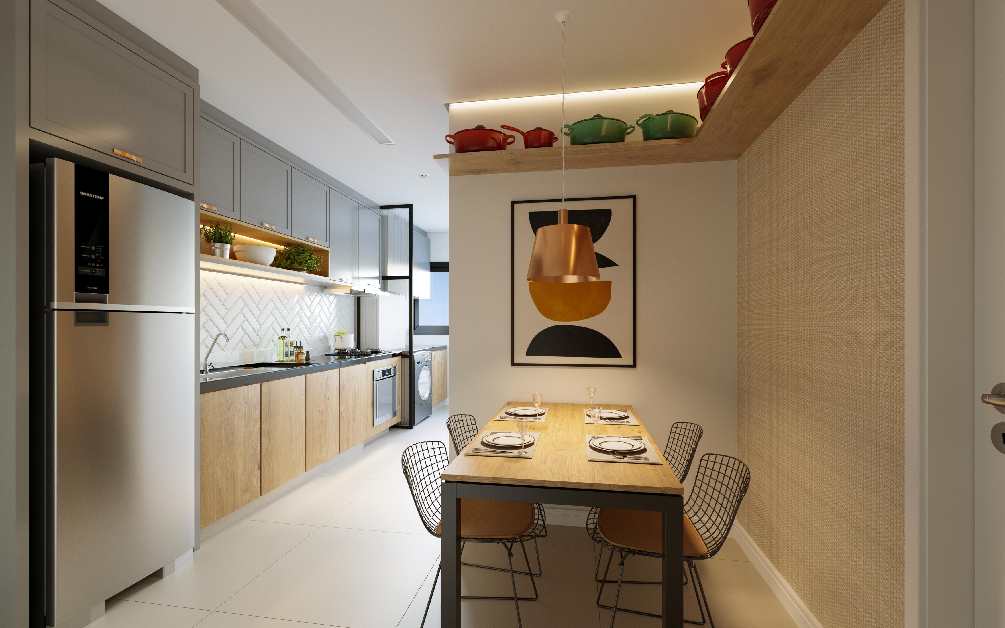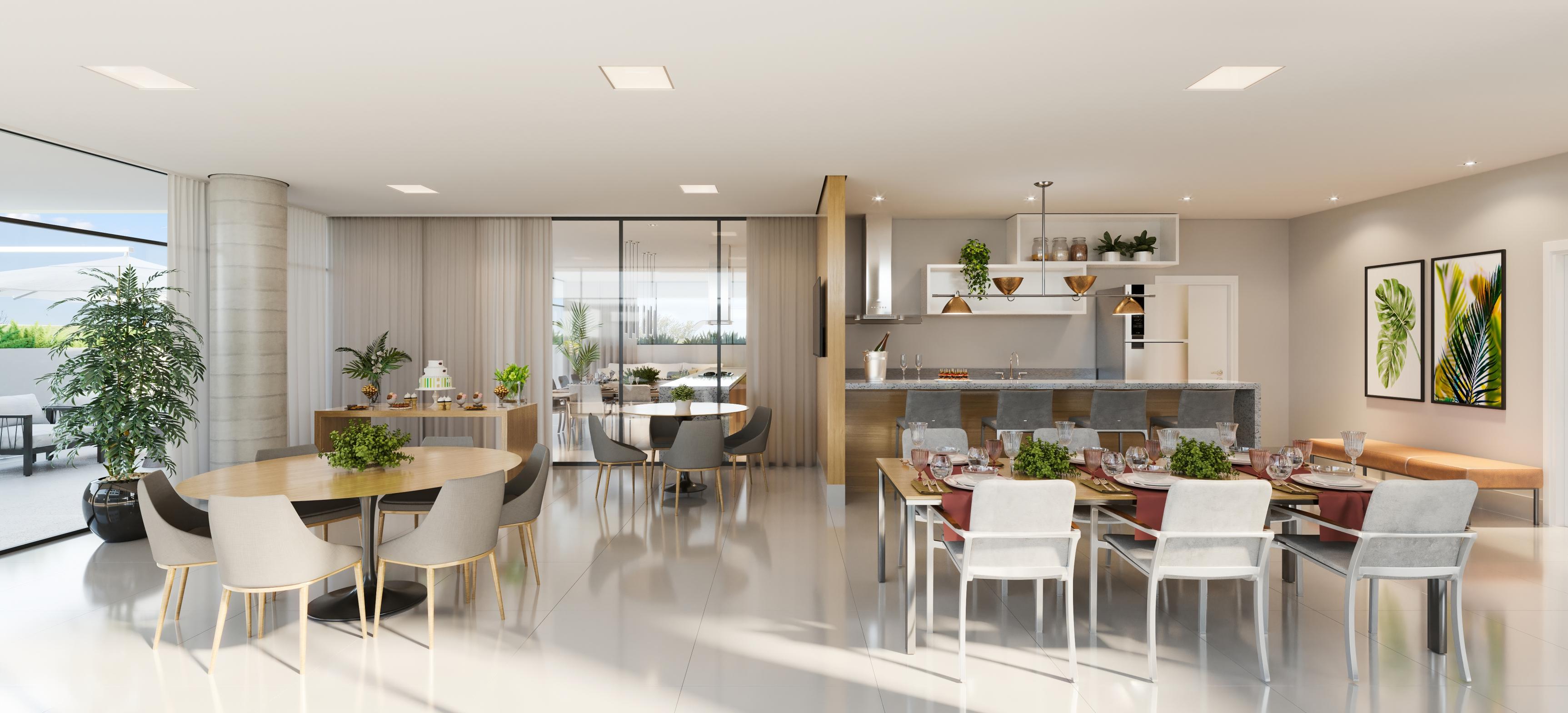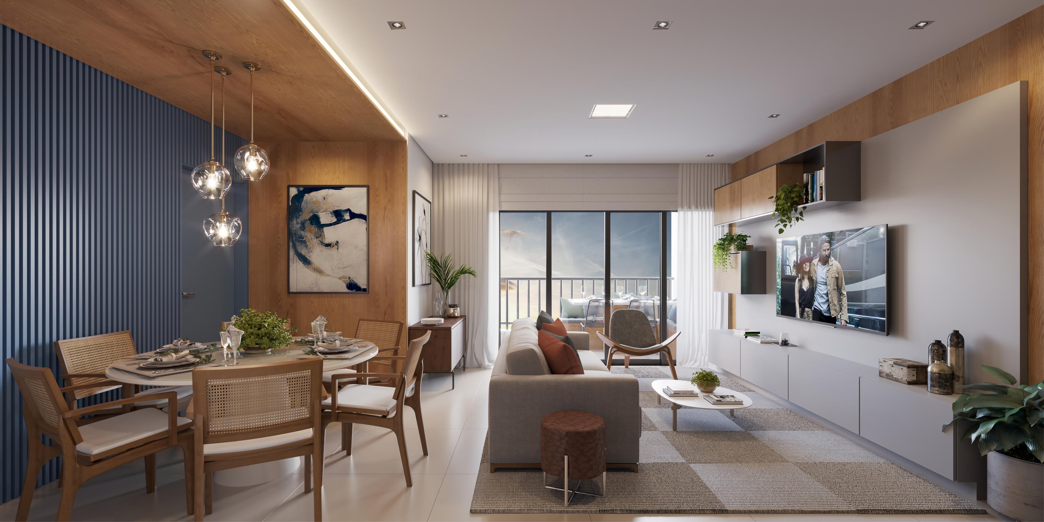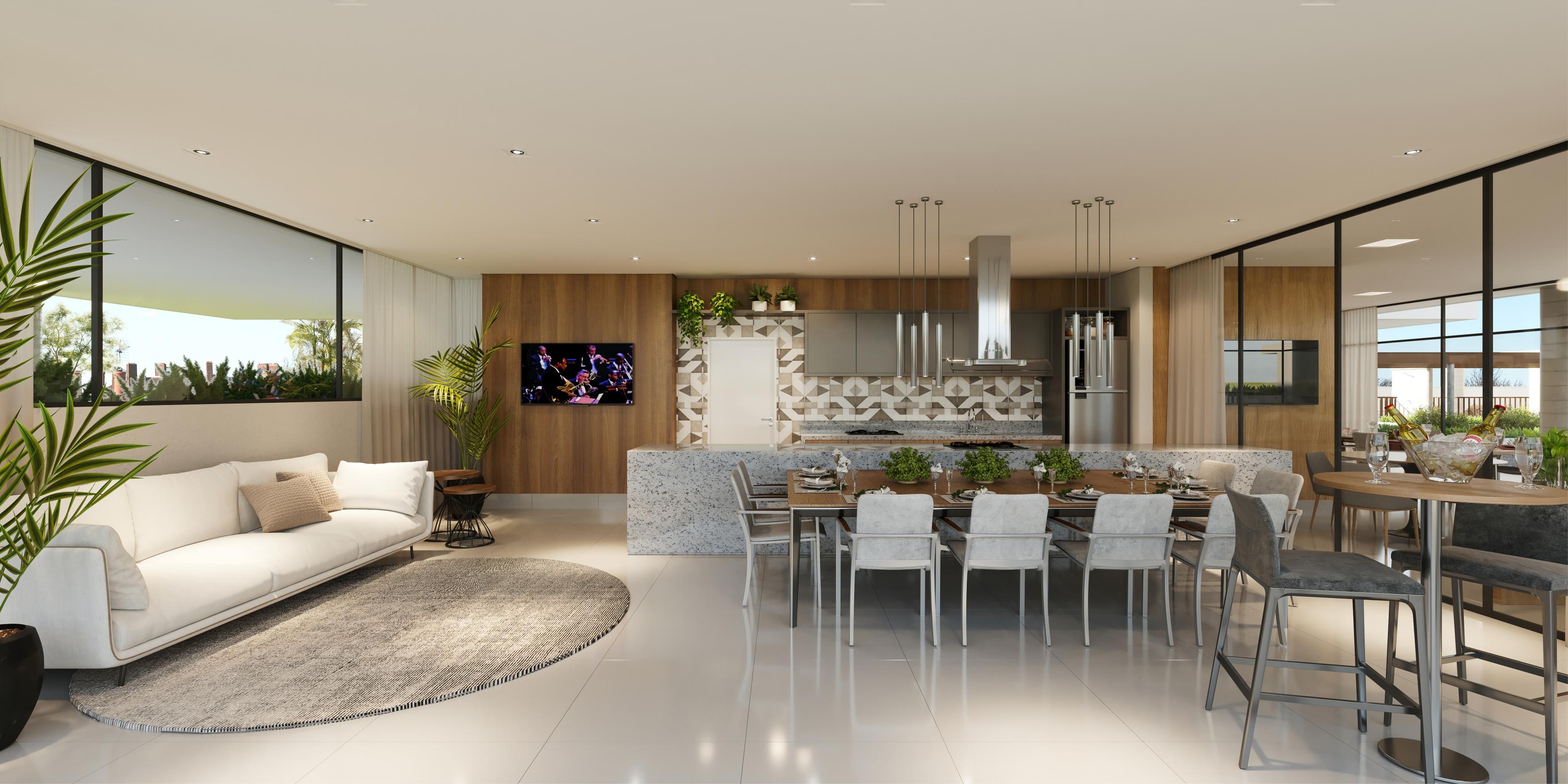 SALA DE ESTAR/JANTAR; LAVABO; 02 SEMI-SUÍTES; 02 SUÍTES (QUARTO COM BANHEIRO); 01 (UMA) LAJE TÉCNICA PARA AR CONDICIONADO; VARANDA COM BANCADA; COZINHA COM COPA MAIS ÁREA DE SERVIÇO; BANHEIRO DE SERVIÇO; 02 VAGAS DE GARAGEM PARA VEÍCULO AUTOMOTOR DE PASSEIO DE PEQUENO E MÉDIO PORTE LOCALIZADAS NO SUBSOLO.